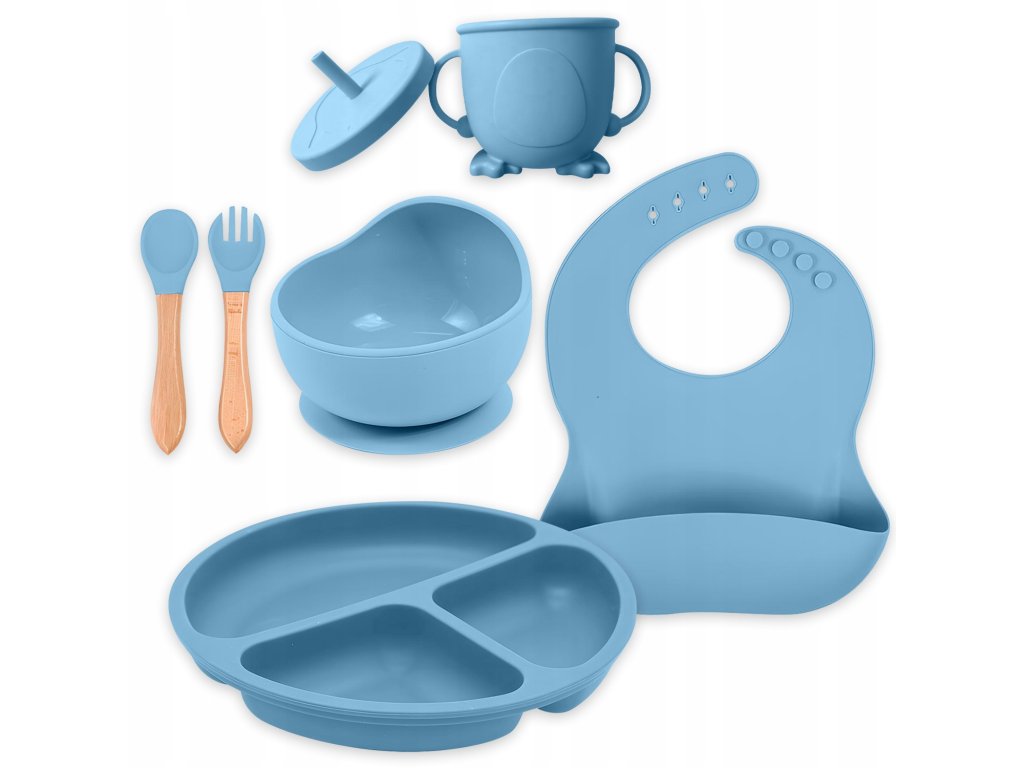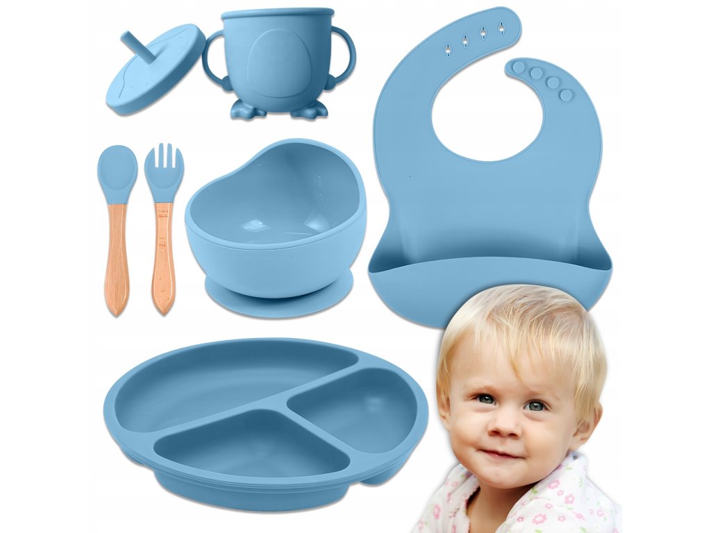 Silikonová jídelní sada pro nejmenší – bezpečná, praktická a s přísavkami (7 ks)
