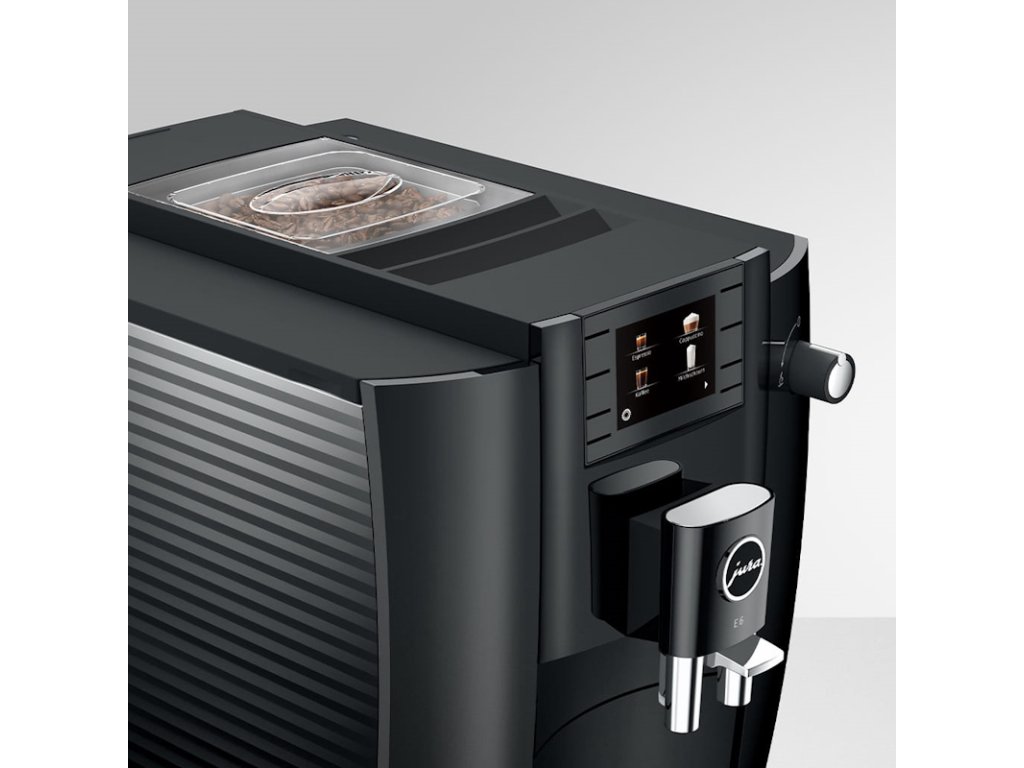 Vychutnejte si každodenní maximální požitek z kávy s novým kávovarem JURA E6. Tento elegantní model připraví perfektní cappuccino a další kávové speciality jediným dotykem, a to díky osvědčené technologii Easy Cappuccino. E6 kombinuje jednoduchost s pokročilými funkcemi pro dokonalý zážitek z kávy.