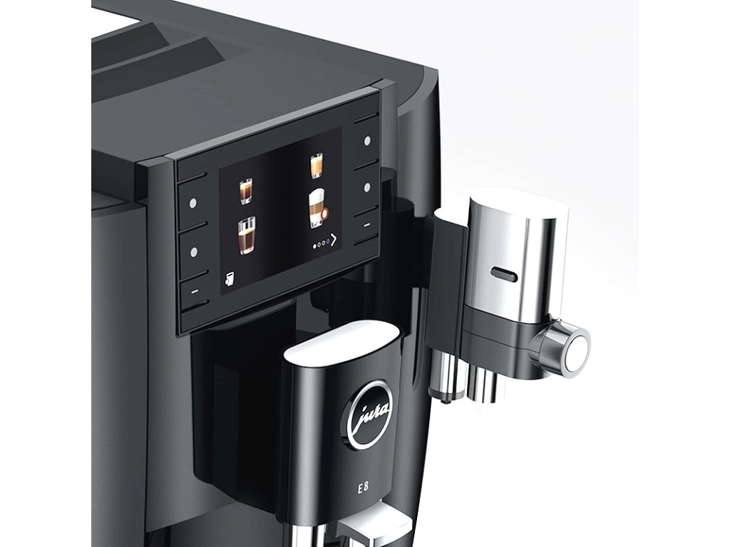 Na velkém 3,5" displeji lemovaném šesti ovládacími tlačítky je obzvláště snadné procházet všemi funkcemi. Díky jasným obrázkům a grafice lze intuitivně využívat rozmanité možnosti modelu E8. Nastavení všech specialit a jejich individuální umístění na displeji je možné libovolně přizpůsobit a názvy produktů skrýt nebo zobrazit. Relevantní informace jsou přehledně zobrazeny v Cockpitu. Ke snadné údržbě přispívá čištění mléčného systému pomocí funkce One-Touch, které automaticky zajišťuje dokonalou hygienu jediným stisknutím tlačítka.