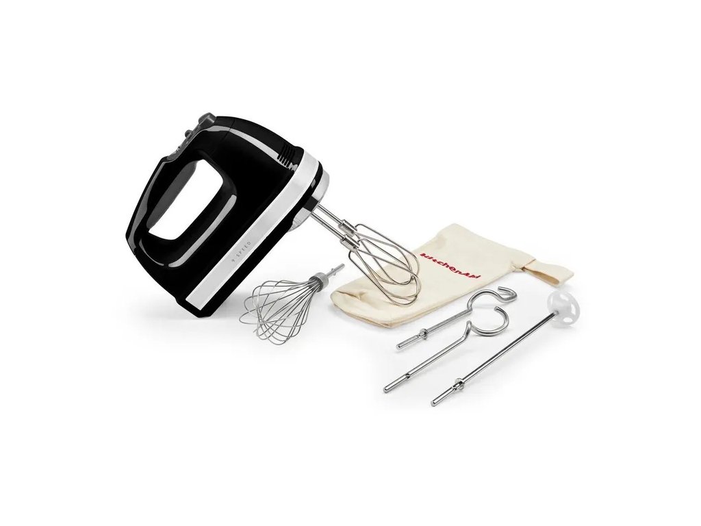 Ruční mixér KitchenAid 5KHM9212EOB je ideální pro všechny, kteří chtějí mít v kuchyni jeden univerzální pomocník pro všechny úkoly. Ať už připravujete dort s vyšlehanou smetanou, hnětete těsto na chleba, mixujete smoothie nebo šleháváte bílky, devět rychlostních stupňů a funkce pozvolného rozběhu zaručí perfektní výsledek. Tichý motor o výkonu 85 wattů znamená, že můžete mixovat i brzy ráno, aniž byste probudili celou rodinu. Kompletní balení s turbo šlehači, metlami, hnětacími háky a tyčovým mixérem pokryje všechny vaše potřeby.