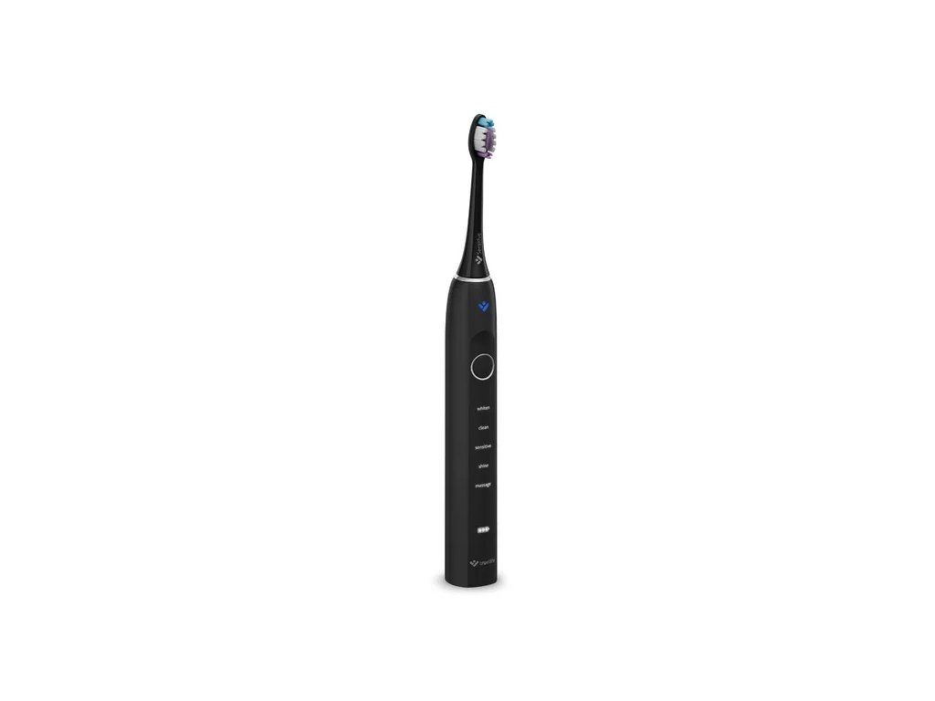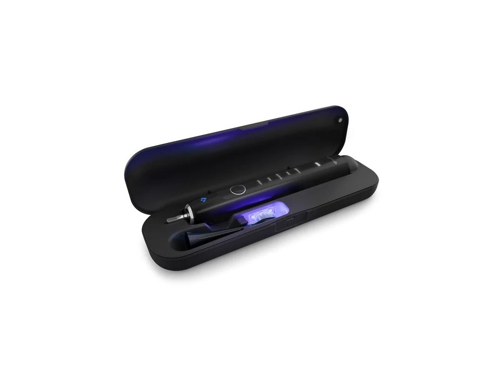 Unikátní výhodou je UV sterilizační pouzdro, které během pouhých 5 minut zlikviduje 99,9 % bakterií. Stačí vložit hlavici do pouzdra a sterilizace se spustí automaticky. Samotné pouzdro zvládne až 17 dní provozu při čištění 2× denně, takže se hodí i na delší cesty.